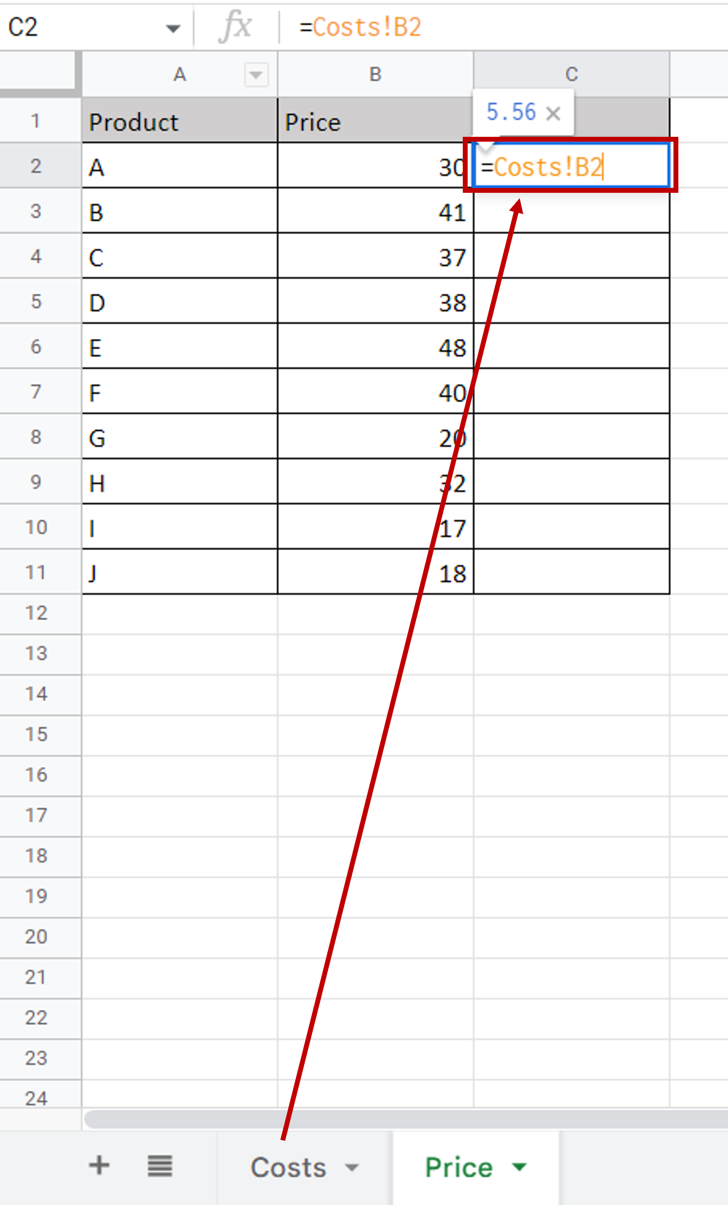 When working with a file with multiple sheets, you may need to refer to data from another sheet or link data in multiple sheets. Using the sheet name and the cell reference, you can either pull data from another sheet or link two sheets so that changes in one are reflected in the other.