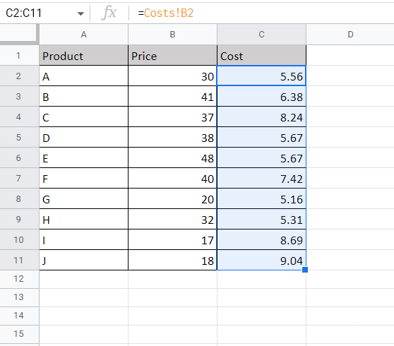 – Using the fill handle from the first cell, drag the formula to the remaining cells